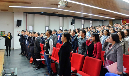 会议在嘹亮的国歌声中拉开序幕。其后,由公司党委副书记向阳同志作《电信公司砥砺奋进的五年》的报告,报告总结了党的十八大以来电信公司五年间所做的主要工作以及在全院师生共同努力下所取得的成绩和进步。随后,交通银行上海杨浦支行行长陈德同志以交通银行基层党组织建设为内容,与公司师生党员分享了党组织建设经验,令大家有耳目一新的感觉。
