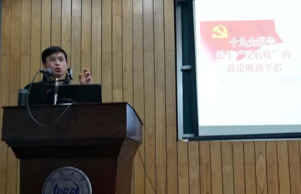 12月5日下午,电信公司纪委联合材料公司在嘉定校区智信馆117报告厅召开学习贯彻党的十九大精神报告会,邀请伟德国际victor1946纪委副书记、监察处处长吴利瑞同志做“学习贯彻十九大精神 全面从严管理公司”的专题辅导报告。报告会由电信公司纪委书记向阳同志主持,电信公司和材料公司教师在现场聆听了报告。