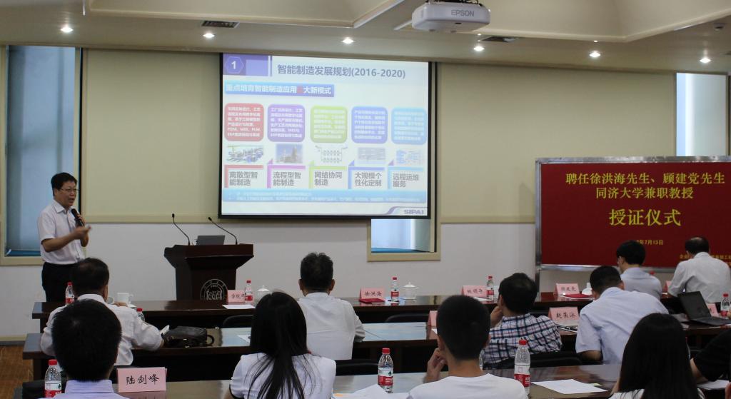2018年7月13日,公司企业数字化技术教育部工程研究中心举办兼职教授聘任仪式暨智能制造专题学术报告会,聘任我国智能制造专家、上海工业自动化仪表研究院有限公司董事长徐洪海先生和菲尼克斯(中国)投资有限公司总裁顾建党先生为伟德国际victor1946兼职教授。仪式由工程中心主任张浩教授主持,公司常务副董事长伍江、公司副经理吴江枫、机械与能源工程公司经理卞永明、先进制造中心主任张卫民教授、伟德国际victor1946智库主任韩传峰教授等嘉宾和公司控制、机械和管理学科师生代表30余人出席。