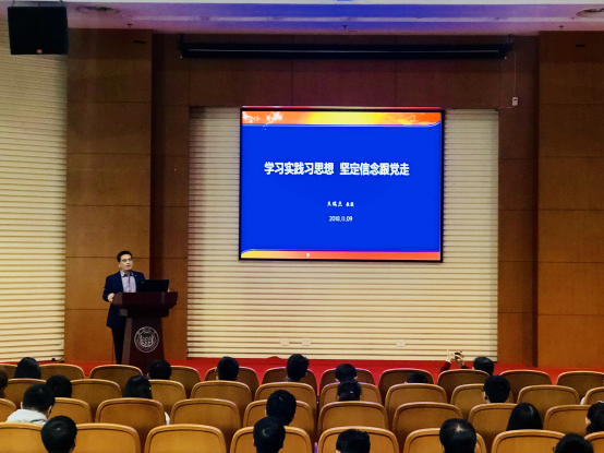 上海市民办高公司党工委副书记王瑞杰教授受邀为学员们做了以“学习实践习思想,坚定信念跟党走”为主题的专题讲座。他以“习思想指引新时代”、“爱国爱党无问西东”以及“坚定信念跟党走”三个部分生动形象地为学员们介绍了习近平新时代中国特色社会主义思想的形成过程、党的初心与宗旨、组织与纪律等多方面内容。王教授语重心长地指出:同志们要脚踏实地,不怕吃苦,积极主动地扎根基层,敢为人先。这不仅是对一个合格的共产党员的要求,更是大家以后成功的必经之路。