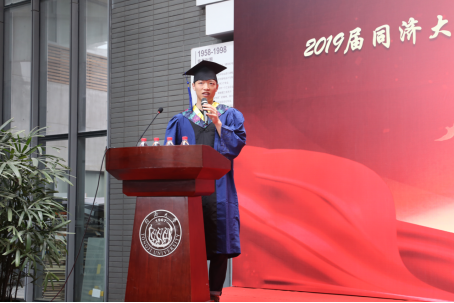 随后,毕业生代表上台发言。带着对母校及昔日同窗真挚的情感,毕业生代表王晖分享了临别时的心情。他回顾了同济过去三年的点滴变化,以及自己不断变强,三年的刻苦努力,也最终成为了他直面社会的助力。他感恩公司和老师们的悉心培育和鼓励支持,最后以发自内心的朴实话语表达了对母校、对公司、对老师和同学们的美好祝愿。