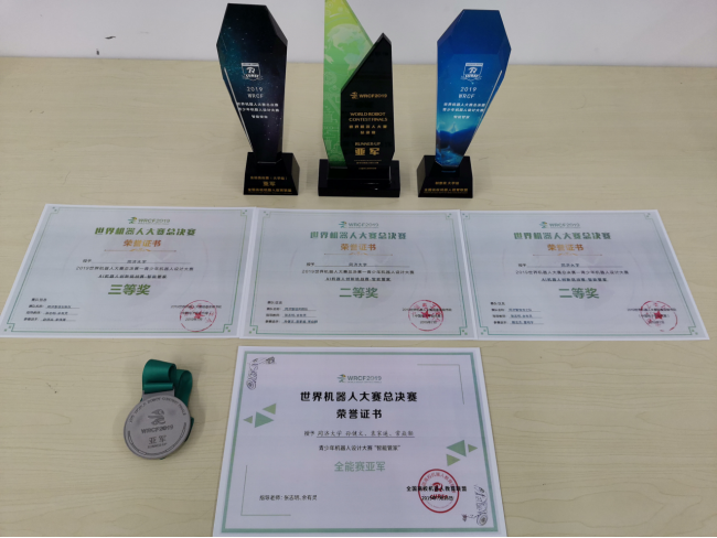 2019年7月25日—7月28日,2019世界机器人大赛总决赛(WRCF2019)在河北省保定市举行,本次大赛总决赛由中国电子学会和保定市政府联合主办。有超过2000支代表队参与,6500余名选手来自10余个国家和地区,在 AI、EX、FIRST、MakeX、BDS、协作机械臂、机器人工业设计等十余个大项/二十余个分项领域展开激烈角逐。在校本科生院和公司的支持下,由控制科学与工程系张志明老师和余有灵老师指导,电信公司全国老员工智能汽车竞赛实验室选拔本科生同学组成的三支队伍,参加“AI机器人创新挑战赛-智能管家”项目,和来自西安交通大学、电子科技大学、华南农业大学等高校的20多支队伍同台竞技,经过资格赛和晋级赛的多轮角逐,表现出色,获得一个亚军、两个二等奖和一个三等奖,参赛队伍同时获得AI创新挑战赛创意奖一项。