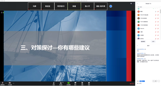 浦发银行第三党支部副书记陈仲肃结合同学们的探讨,围绕银行的企业属性、银行的金融属性两个方面,对银行业目前遇到的挑战进行了概述,并分享了以加强银行全方位数字化转型为重点的抗“疫”对策。浦发银行将持续推进银行业务线上化、线上办公系统扩容、线上办公工具改进、开展智能客服与自智能营销业务,建设数字生态银行。充分利用大数据及人工智能金融科技手段,加速银行向数字化、网络化和智能化的转型进程。