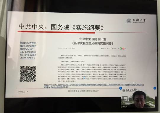 随后全体教师又进行了简短发言和讨论。支部书记龚晓亮认为,对比此次国内国外防疫的举措和实效,让我们更加强化爱国主义精神,更加深刻地感受到祖国的强大国力和优越制度,更加坚定了四个自信。副主任陆杰结合个人努力学习信息工具、提高网课能力的经历,感悟了爱国情怀与爱岗敬业的紧密关系。徐志宇号召大家将爱国主义教育落实到教学工作中,把这段居家的时间充分利用起来,在虚拟仿真、精品实验、规范教材等方面积极地补短板、强弱项,厚积薄发,取得突破。