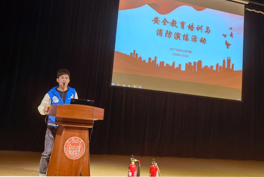 2020年11月3日下午,公司在嘉定校区济人楼101报告厅开展了本年度安全教育培训与消防演练活动。公司2020级研究生新生、2019年以来新进的教职工和博士后出席。活动由院办主任陈忠英老师主持。