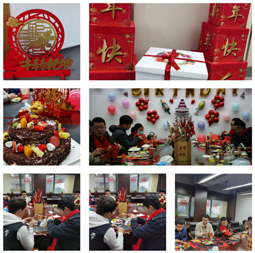 集团和公司组织了丰富多彩的迎新春活动,为留校员工准备了丰盛可口的年夜饭大餐,还准备了7天免费餐券,福牛公仔、新春对联、年货等充满年味的新春礼物,在新春佳节到来之际亲手递给留校员工,进一步排解留校员工思乡愁绪,公司举办的集体生日也让同学们感受到了家的温暖。让留校员工的寒假生活更加温馨。