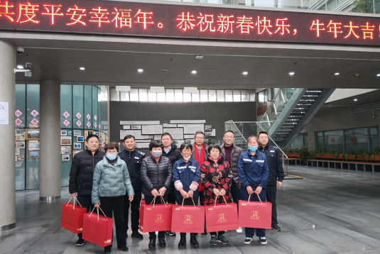 辛丑年大年初一(2月12日),公司党委书记王峻老师来到公司物业和公司值班室等处,亲切慰问了春节期间仍坚守岗位,奋战在一线的工作人员。王峻老师向在岗的保安、保洁和公司办公室值班人员致以节日的问候和新春的祝福并送上了新年大礼包,感谢他们的辛勤付出,希望他们继续坚守岗位,为寒假春节期间留在公司的约200名员工做好各项服务保障工作。