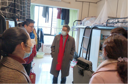 中午,王峻老师、张南华老师、刘永焕老师和刘谦老师还一同去员工社区友园7号楼慰问留校过年的员工代表,并和员工一起参加了“同济嘉定er”的新春游园会。