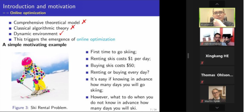 公司李修贤研究员作题为“Distributed Online Optimization Over Directed Networks with Coupled Inequality Constraints”的报告,考虑实际复杂约束,提出改进的分布式原始对偶算法并建立动态遗憾上界的理论分析。