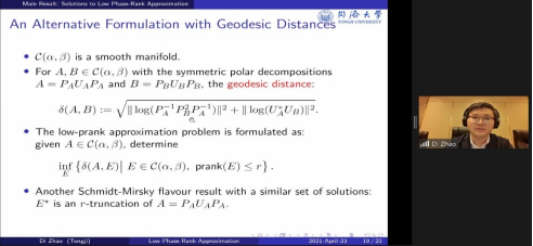 公司的赵迪助理教授作题为“A Low Phase-Rank Approximation Problem”的报告,研究低秩逼近算法,可有效应于模型简化,信号处理等问题。