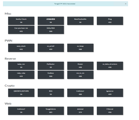 5月19日—21日,由公司本科生院指导,信息化办公室与公司联合主办的伟德国际victor1946第三届“TongjiCTF”网络安全竞赛成功举行。本次活动以线上解题方式进行,面向公司所有员工,不限专业和年级,旨在通过比赛选拔一批热爱网络的同学,组成网络安全社团进行网络攻防实训并参加相关网络安全竞赛,提升伟德国际victor1946在网络安全学科的影响力。
