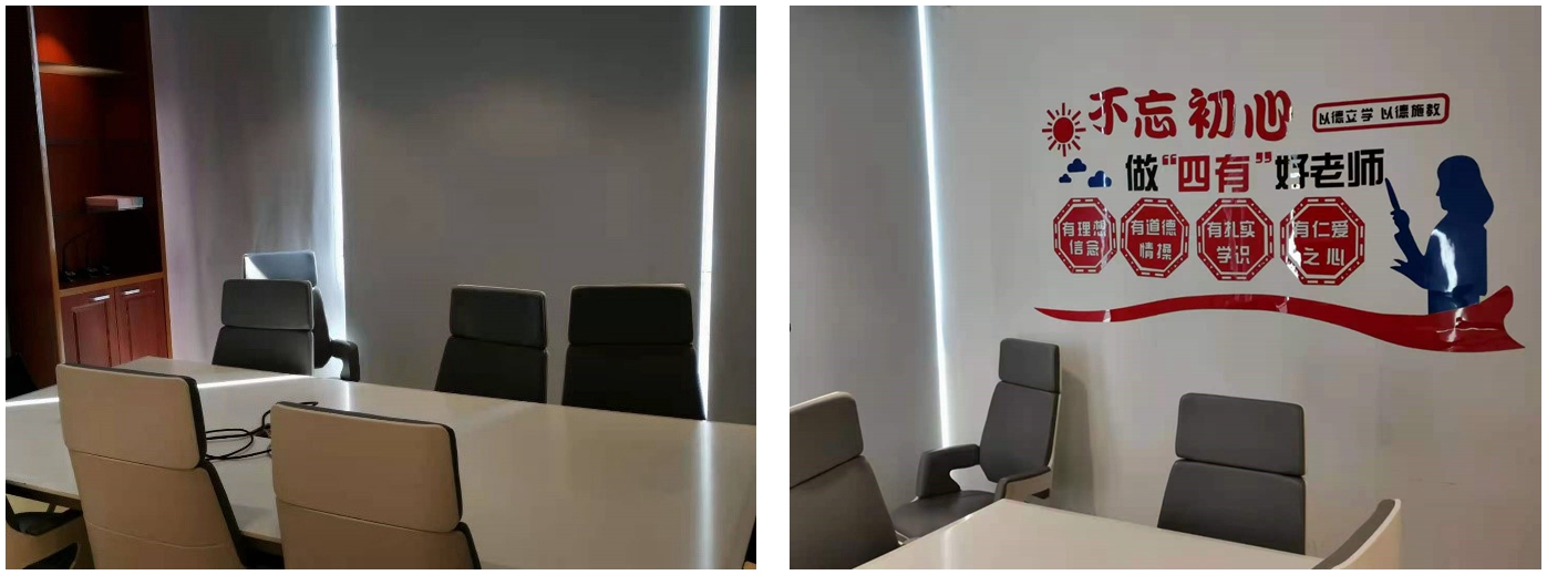 此次实践活动重点针对系里使用率高的602和603会议室,重新更换了窗帘,加装了墙贴。