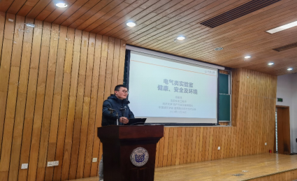 首先,校资产与实验室管理处的葛晨晨老师以“电气类实验室 健康、安全及环境”为题,从《教育部关于加强高校实验室安全工作的意见》切入,围绕着电气事故类型及危害、实验室电气安全及防护等方面进行深入介绍。他以高校发生的重大实验事故为例,强调师生们要认识到实验室安全的重要性、实验室制度化安全管理和实验室安全教育培训的必要性。