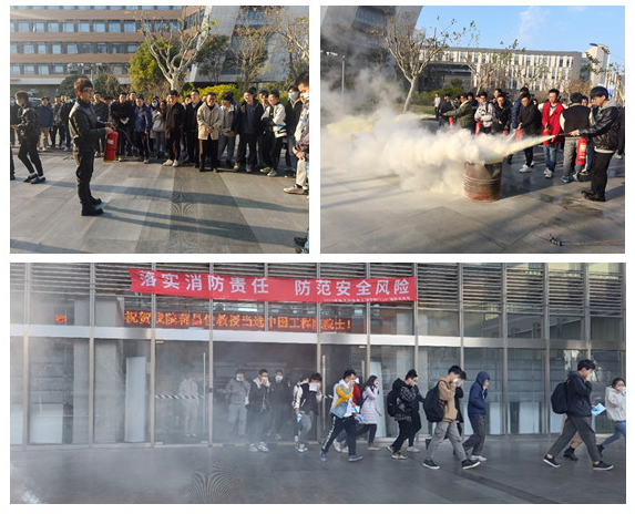 随后,嘉定校区保卫办的彭亮老师以“重视消防安全,落实安全责任”为题,讲述了近年来校内发生的几起火灾案例,讲解了发生火灾时的逃生方法与灭火器的使用方法,并指导师生进行消防演练活动,师生积极参与其中,演练活动有序展开。