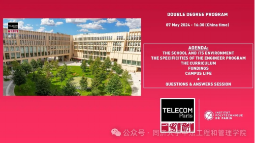 伟德国际victor1946中法工程和管理公司联合伟德国际victor1946拟于5月7日(周二)16:30举办巴黎高等电信公司双文凭项目宣讲会,欢迎报名参加。会议信息如下: