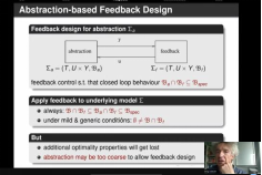 Joerg Raisch教授分别从反馈的需求、正式模型的需求、预测能力的牺牲以及标准代数的牺牲等方面展开报告。首先,Joerg Raisch教授介绍了什么是控制、什么是反馈,指出控制的目的、控制问题以及反馈控制的特性。然后,Joerg Raisch教授介绍了正式模型以及模型自由度的选择对于系统性反馈控制设计的重要性。接着,详细介绍了抽象和细化的概念和表达,构建基于抽象的反馈设计并将其应用于考虑的原始模型,并利用一个实际案例进行验证。而后,Joerg Raisch教授以一个玩具案例介绍了同步和延迟。对同步进行建模并且给出由时间事件图建模的关系。最后介绍了幂等半环的定义和性质以及在矩阵上的运算,并将其应用前述玩具的案例分析其系统模型。Joerg Raisch教授丰富精彩的报告为公司师生学习和科研工作带去了思想启发,也为同学们了解反馈控制的模型提供了有益指导。