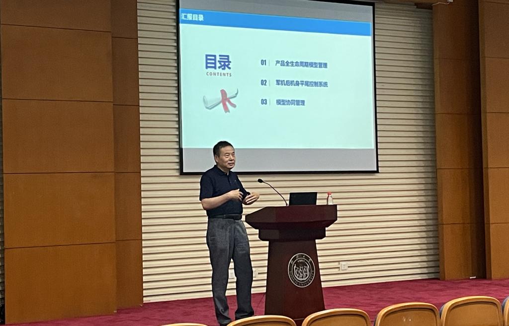 报告内容涉及产品全生命周期模型管理、军机后机身平尾控制系统和模型协同管理三个方面。岳继光教授和暑期公司学员们展开了积极的互动,针对“理解产品的设计过程”“说说能够做直线运动的装置”“说出日常生活中的‘阀’”“简述军机身平尾控制系统的工作机理并指出涉及的学科类别”“谈谈你对复杂产品初步设计过程中的协同方法的理解”“谈谈你对数字孪生的理解”6个问题展开了深入的交流,深入探讨复杂产品初步设计过程中“机、电、液、控、软、声、光、磁、热、材”等多学科专业人员的协同策略,复杂产品的数字化、模型化初样设计和数字孪生实验等技术。在交流中,岳继光教授强调工科的魅力在于将数理方程和化学方程做成产品,就如何进行复杂产品全生命周期设计为同学们提供了丰富有益的指导。