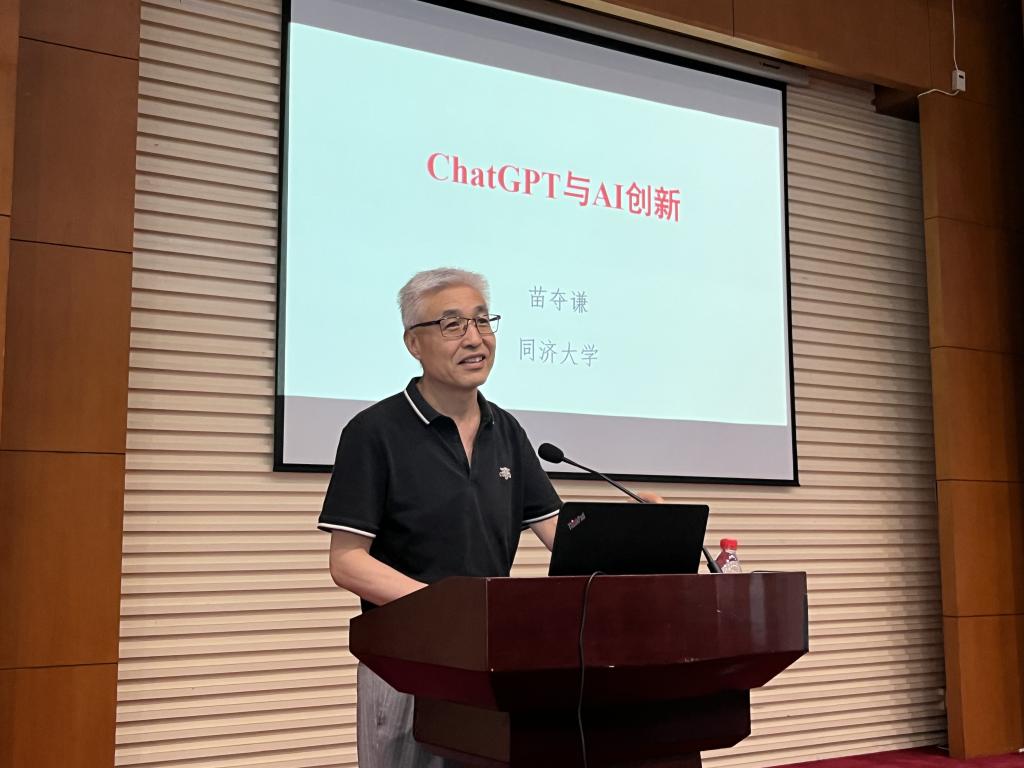 7月2日下午,暑期公司系列讲座第三讲在同心楼224室开讲。计算机科学与技术学科专业委员会副主任苗夺谦教授应邀作了“ChatGPT与AI创新”主题报告。本次讲座由研究生工作办公室副主任张云霞老师主持。