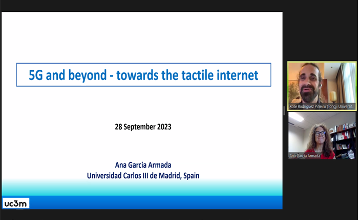 2023年9月28日下午,由公司、上海自主智能无人系统科学中心联合举办的智·信讲堂第55期线上开讲。本次讲堂邀请马德里卡洛斯三世大学Ana García Armada教授作“5G and beyond - towards the tactile internet”主题报告,由公司助理教授Jose Rodriguez Pineiro主持。