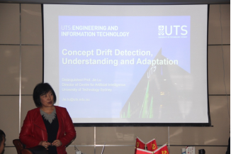 Jie Lu教授首先介绍了悉尼科技大学人工智能中心,尤其是关于中心的规模与研究领域以及主要研究方向,热烈欢迎同济学子前往悉尼科技大学深造攻读博士学位。接下来,Jie Lu教授就智能中心的一个研究方向也就是概念漂移进行了深刻的演讲,介绍了概念漂移的概念定义以及重要性。从传统机器学习入手,自然引入概念漂移,通过对移动电话用户行为的分析举例对概念漂移进行了详细的介绍,并且对概念漂移进行了细致的分类与分析。针对这些问题,Jie Lu教授结合其团队多年来的研究成果讲解了漂移检测、漂移理解以及漂移适应性。介绍了多种处理策略特别是对多种实用的检测方法例如基于能力模型的漂移检测、模糊能力模型的漂移检测、基于在线能力模型的漂移检测、基于相同密度估计的漂移检测等进行了详细介绍。最后,对概念漂移的未来发展趋势以及应用进行了展望,其精彩而专业的报告赢得了同学们的阵阵掌声。报告结束后,Jie Lu教授就讲座内容以及同学们研究时遇到的问题与同学们进行了积极的讨论和深入的交流。