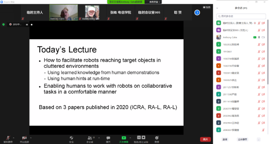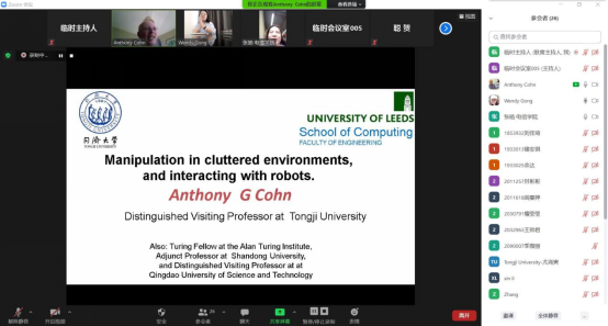 4月23日,英国利兹大学教授Anthony G Cohn应邀参加公司智·信讲堂,通过ZOOM线上形式,作了题为《混乱环境中机器人的交互与操控》学术报告,并与师生开展学术交流及探讨。