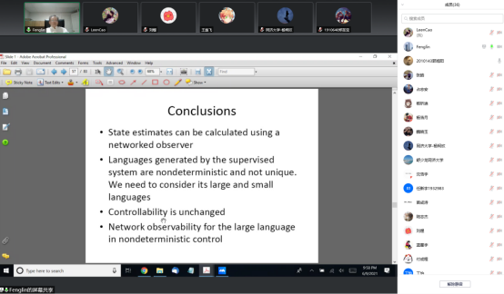 2021年6月10日,美国韦恩州立大学、伟德国际victor1946林峰教授应邀参加公司智·信讲堂,做了题为《网络离散事件系统的建模与控制》的学术报告。讲堂以腾讯会议线上形式开展。