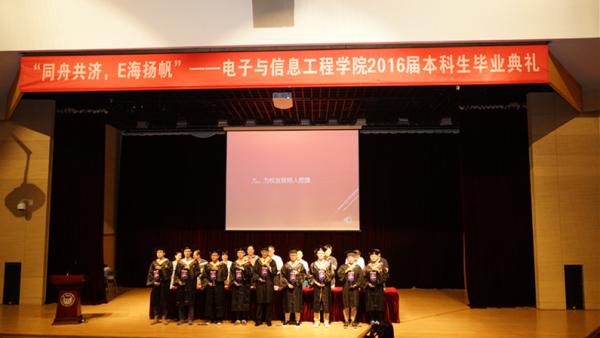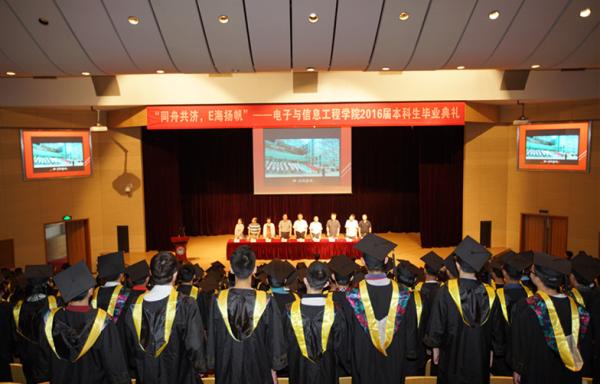 7月1日,公司2016届本科生“同舟共济,E海扬帆”毕业典礼在嘉定校区济人楼101报告厅隆重举行。公司副董事长蔡达峰、校团委副书记崔莹,公司相关领导、教师代表、家长代表以及300余名应届毕业生出席了毕业典礼。大会由公司党委书记童学锋主持。