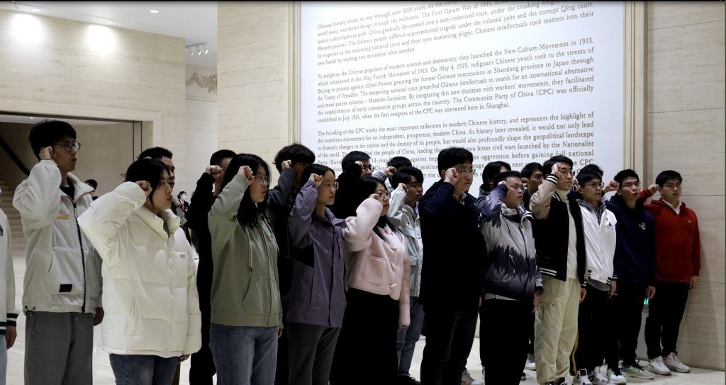 为深入学习贯彻党的二十大精神,进一步加强爱国主义教育,高质量推进发展党员工作,11月17日,公司员工党委组织开展“红色足迹寻初心,吾辈青年正前行”主题党日实践活动。公司党委副书记、员工党委书记徐伟铖老师、党委组织员孙世琳老师、本科生第二党支部书记汤若琦老师共同带领88名预备党员、发展对象和入党积极分子前往中共一大会址进行参观学习,重温革命历史,追寻革命足迹,感悟初心使命。