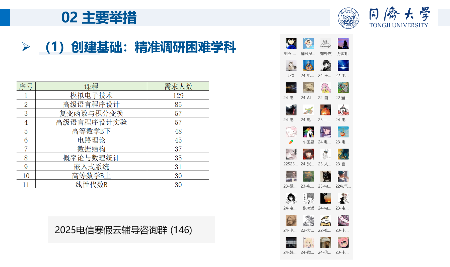 会议总结回顾了公司在2025年寒假开展的学业“云”辅导工作基本概况与工作成效。本次寒假云辅导共开设了包括《模拟电子技术》《高等数学B》《微控制器原理及应用》《自动控制原理》《电路理论》《线性代数B》《高级语言程序设计》《复变函数与积分变换》《数据结构》等10门重点难点课程,共覆盖了140余名本科生,学员的总体考试通过率超过75%。
