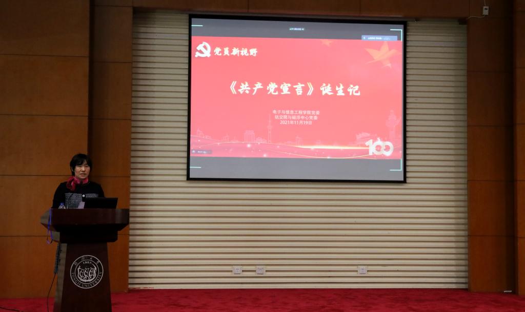 为深入学习习近平总书记“七一”重要讲话精神,在学思践悟中成长,在知行合一中前行,进一步学习马克思主义经典著作《共产党宣言》,感悟思想伟力,坚定理想信念,2021年11月19日下午,公司党委联合轨交院与磁悬浮中心党委在嘉定校区同心楼224报告厅举办题为“《共产党宣言》诞生记”的党员新视野专题党课,上海市委党校肖鹏老师受邀来校。专题党课由公司员工党委副书记刘永焕主持,公司党委副书记张南华、辅导员党史学习第六小组成员和员工党员、入党积极分子近300人线下线上参加了党课学习。