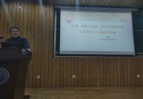 专题党课上,刘骞老师结合历史上的国家主权和领土完整、党的三份历史性决议等史料出发,结合习近平总书记关于国家安全观的重要论述,以历史的视角向大家讲授中国的国家安全战略。首先,他解读我们所处的时代,百年未有之大变局,并带领同志们理解百年未有之不确定性和未有之机遇,引导大家在新时代的关口积极思考并努力行动;接着,他结合国家安全战略有效实施的形式与因素,带领大家分析我国国家安全和社会稳定面临的威胁和挑战,引导大家认识到维护国家安全和社会稳定的任务艰巨;最后,刘骞老师从国家安全战略有效实施的重要内容出发,结合总体国家安全观的内涵,从历史发展的视角,从政治、经济、文化、社会、科技和网络等领域引导同学们提高思想认识,以发展的眼光,勤于思考,把握国家安全的形势变化,身体力行贯彻总体国家安全观。