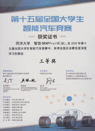 本届创意组比赛设ROS室外光电组和深度学习组两个组别,总决赛难度加大,场景化地复现人工智能在实际领域中的应用。电信公司老员工智能车竞赛实验室组建的两支队伍先后在各自组别的预赛中杀出重围,成功晋级,代表伟德国际victor1946参加线下现场总决赛。其中“智信ROS”队在ROS光电组国赛预决赛中以18.69秒成绩排名第9,在一等奖排位赛中因车模齿轮机械故障遗憾未能发车,最终排名11(全国一等奖),队员:赵师兵(自动化)、郭展羽(自动化)、贺兰山(自动化)、郑家齐(通信工程),指导教师:张志明、余有灵;“智信•GRAPfruitE”队在深度学习组总决赛比赛中取得全国三等奖,参赛队员:陈麒宇(通信工程)、党荣浩(自动化)、张天成(通信工程);指导教师:张志明、朱劲。