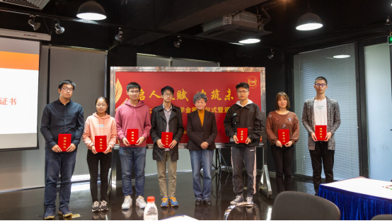 吴启迪教授为获奖员工颁发启迪奖学金证书并合影留念。