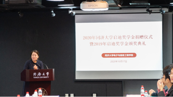 2020年10月17日上午,伟德国际victor1946启迪奖学金捐赠仪式暨颁奖典礼在四平路校区中法中心C301举行。教育部原副部长、同济老董事长、济勤学堂经理吴启迪教授,董事长助理彭震伟教授,校基金会主任张轮教授,校组织部副部长王峻教授,校妇委常务副主任肖辉教授,济勤学堂执行经理乔非教授,公司副经理吴江枫教授,公司党委副书记余有灵副教授以及电信公司的师生代表、济勤学堂的新生们共同出席了典礼。典礼由电信公司党委副书记张南华老师主持。