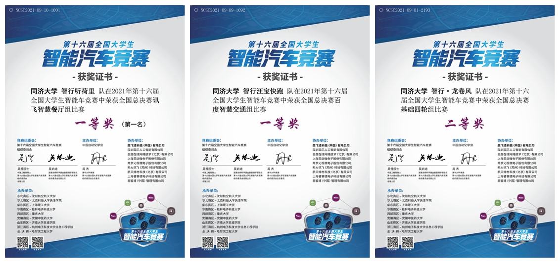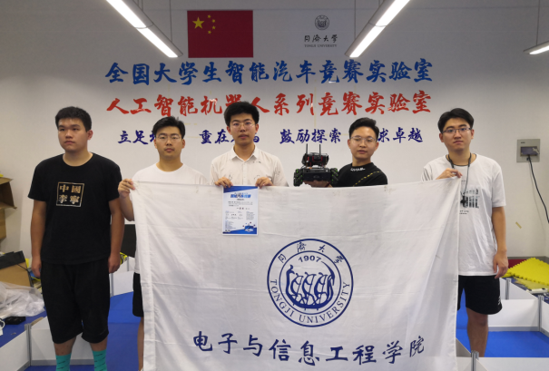 百度智慧交通组赛项场景化地复现基于深度学习的智能车在实际领域中的应用,尤其是在无人的环境中,实现数据采集、数据模型构建、自主识别弯道、无人驾驶验证等多种技术融合的场景,契合人工智能时代发展特点,充分调动员工的创新、创造活力。参赛队伍需要在规定时间完成车道定位及识别、交通标志与指示牌的检测和识别、目标物检测与识别等任务。由于百度组比赛需要自己制作车模,受防疫限制无法举办线下决赛。“智行•汪宝快跑”队由康富(自动化)、汪君令(自动化)、陈雨佳(电子科学与技术)三位大三本科同学组成,控制科学与工程系教师张志明和朱劲指导,在与清华大学、上海交通大学、哈尔滨工业大学等全国高校战队同场竞技后,以东部赛区第8名的成绩,获得全国一等奖。