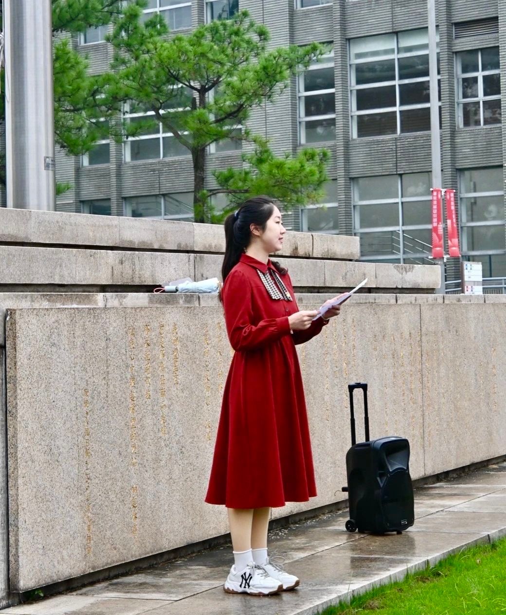 来自机械与能源工程公司的徐韶涵同学上台发言。中国精神,是“坚韧不拔、自强不息”的奋斗精神,是“勇于探索、敢于创新”的进取精神,也是“团结协作、共克时艰”的团结精神。在抗击新冠疫情的战役中,无数90后、00后的青年医护人员、志愿者挺身而出,他们用行动诠释了“国家有难,匹夫有责”的担当,展现了新时代中国青年的勇敢与无私。在科技、体育、文化等各个领域,我们也看到了越来越多的年轻人,他们凭借自己的才华和努力,在国际舞台上为中国赢得了荣誉,让世界看到了中国年轻一代的风采。