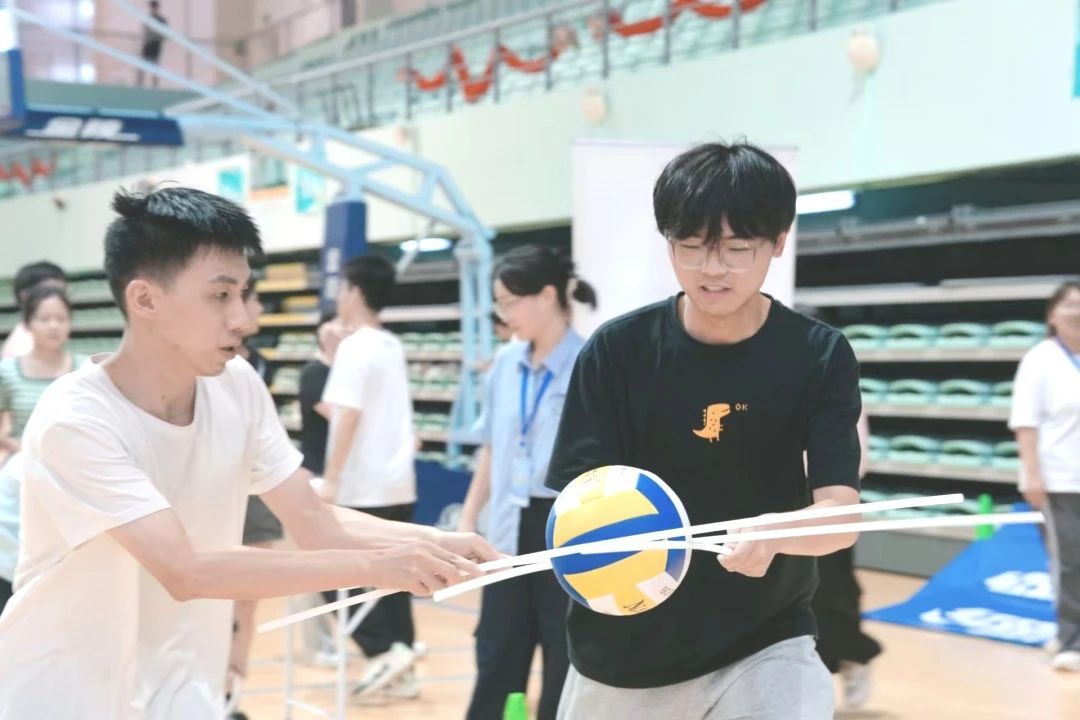 团体项目“众星拱月”精彩上演。来自伟德国际victor1946、计算机科学与技术公司、国豪书院等12支代表队的精英们齐聚一堂,他们通过同心鼓颠球的巧妙配合,一边保持排球在空中弹跳,一边携手冲向终点线,充分展现了团队协作的力量与默契。