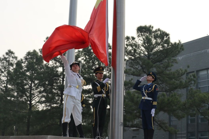 红旗猎猎飘扬风中,也飘扬在每个人心中。伴随着激昂的国歌响起,国旗在师生们的注目中升向空中,空中的一抹红,成为了清晨中最振奋人心的所在。